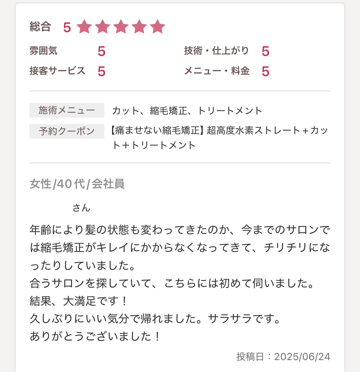 ホリスティックストレートと水素ケアの効果は、写真以上の感動です。