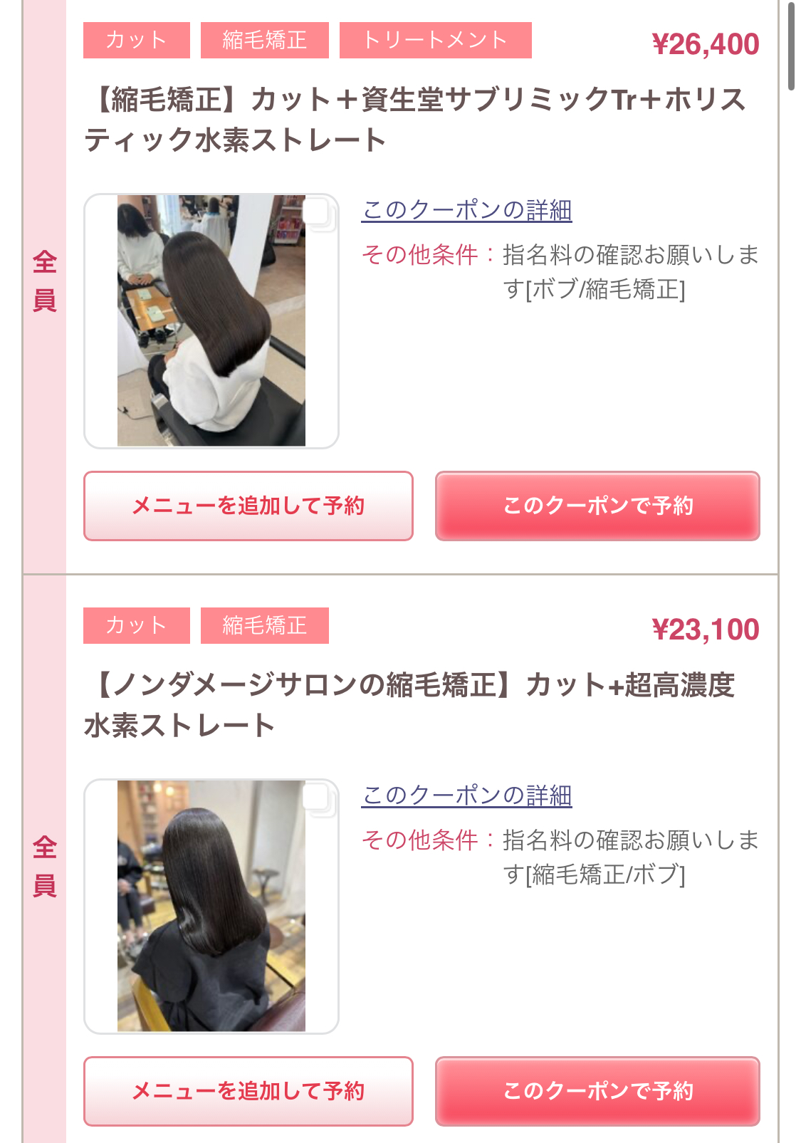 平日限定髪質改善メニュー↓