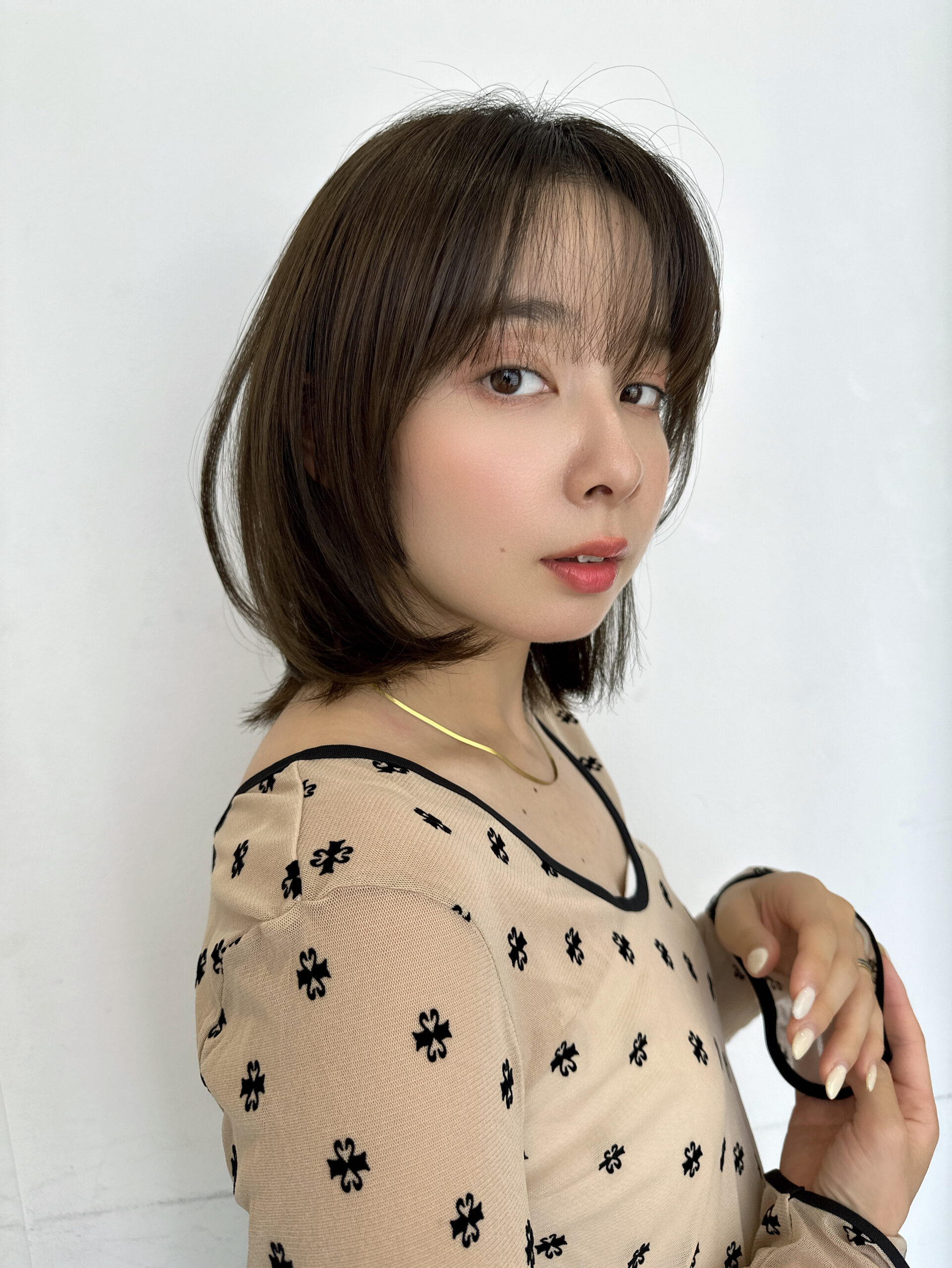 ウルフボブは、サイドやトップを軽めにして丸みを持たせたシルエットと、襟足をレイヤーで長くタイトに残したカットが特徴のスタイル。
