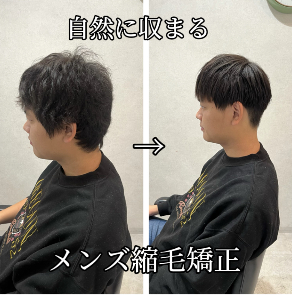 今回はメンズスタイルでもピンピンにならない,自然に収まる縮毛矯正についてご紹介致します!