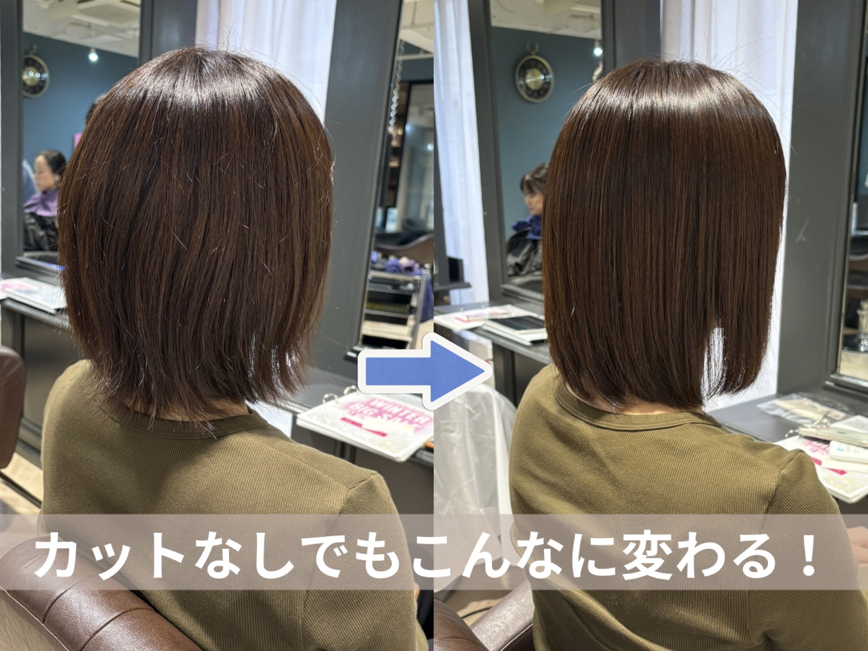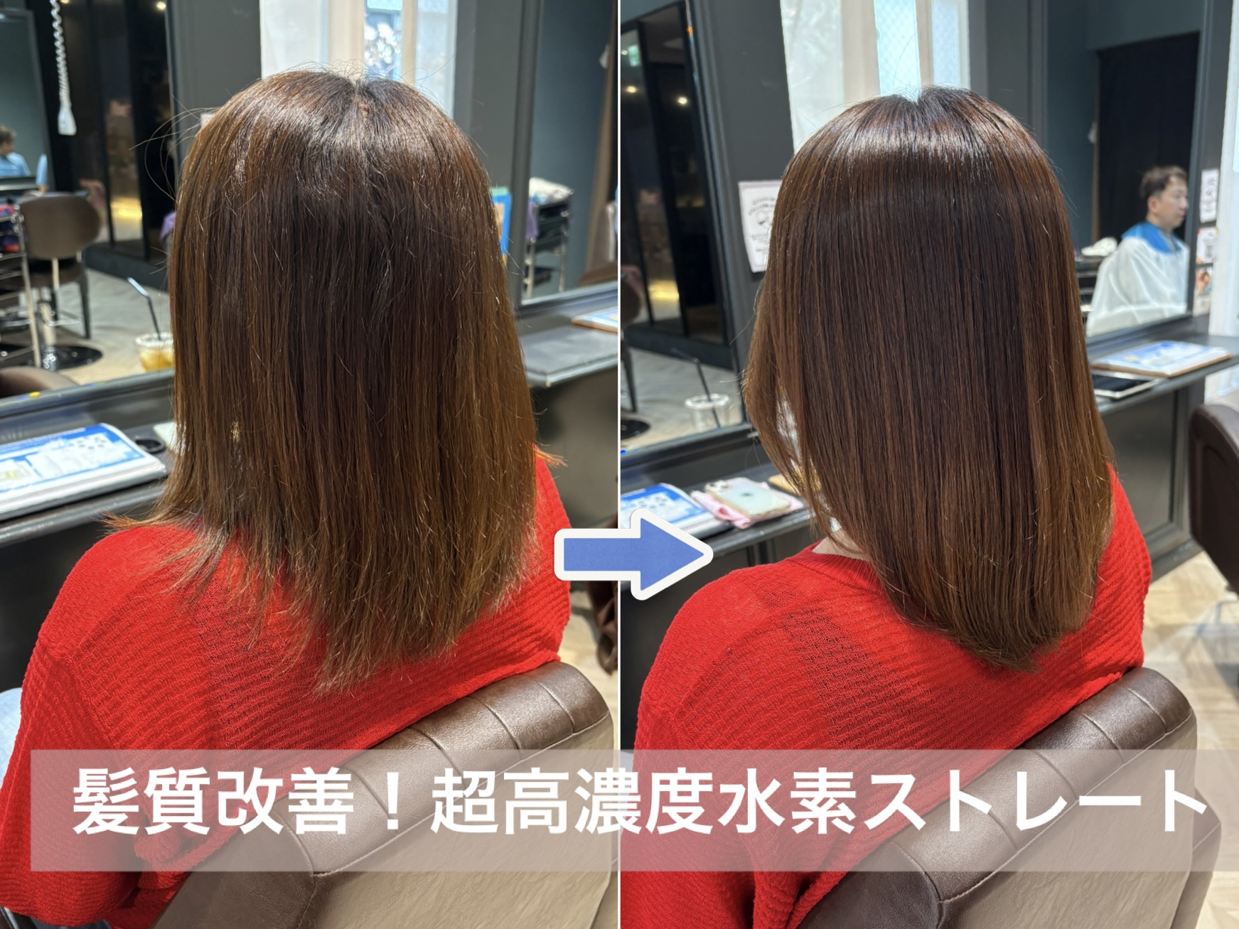 ↑高濃度水素ストレートの効果でで美人髪!