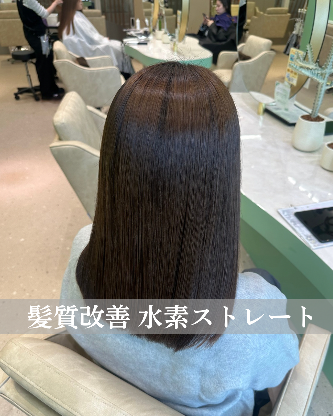 昔のピンピンになるストレートのイメージがまだあるこの時代に、私は『水素ストレート』でツヤツヤに導きます!