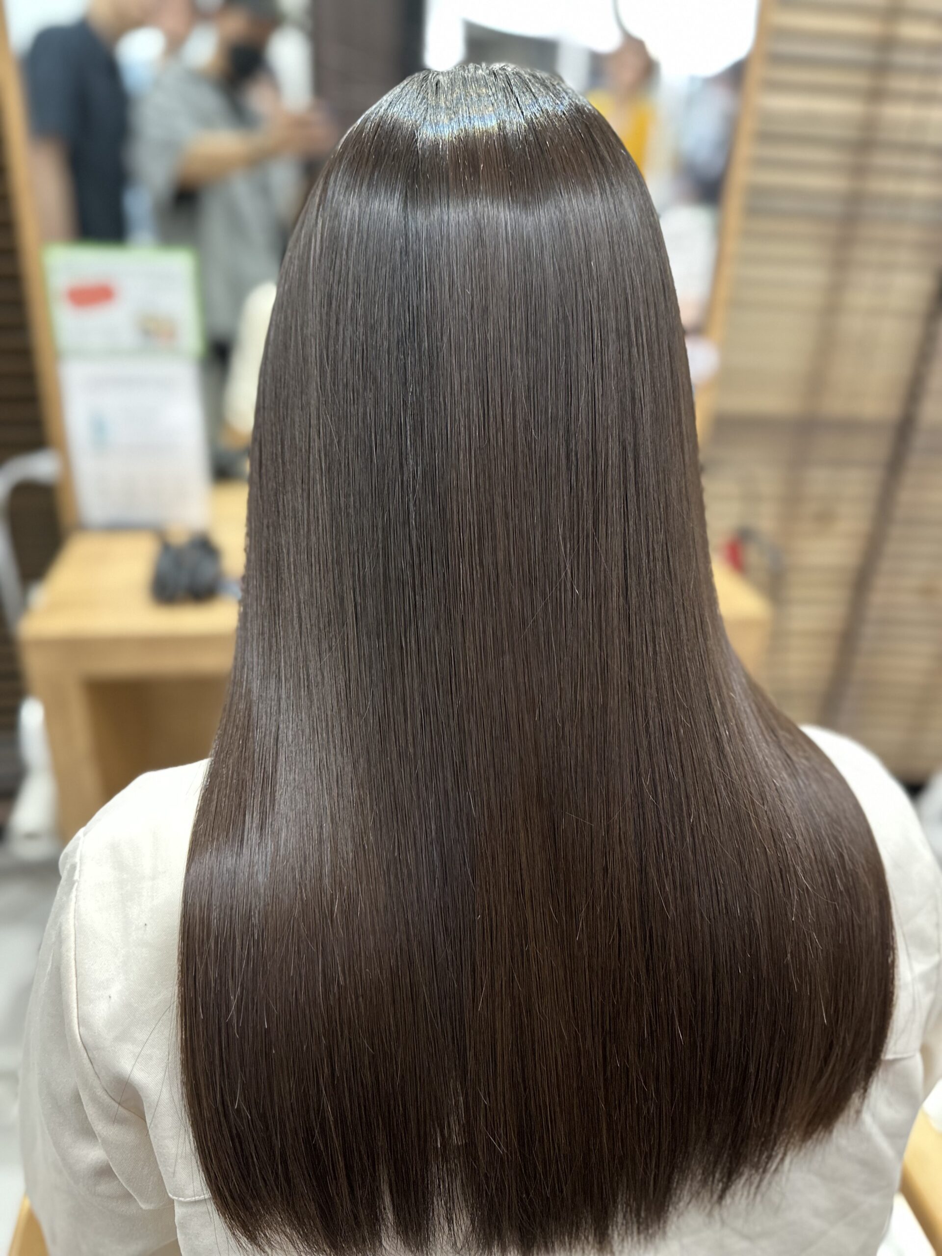 また、水素の力で補修する水素ストレートは、乾燥やダメージによるうねりを自然に整えてくれるため、しなやかな質感が持続します。