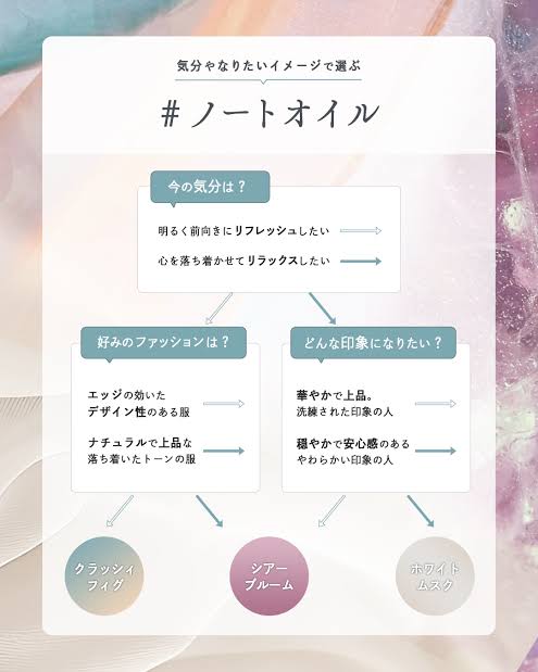 note by N. のスタイリングオイルが多くの方に選ばれている理由のひとつが、香りへのこだわり。