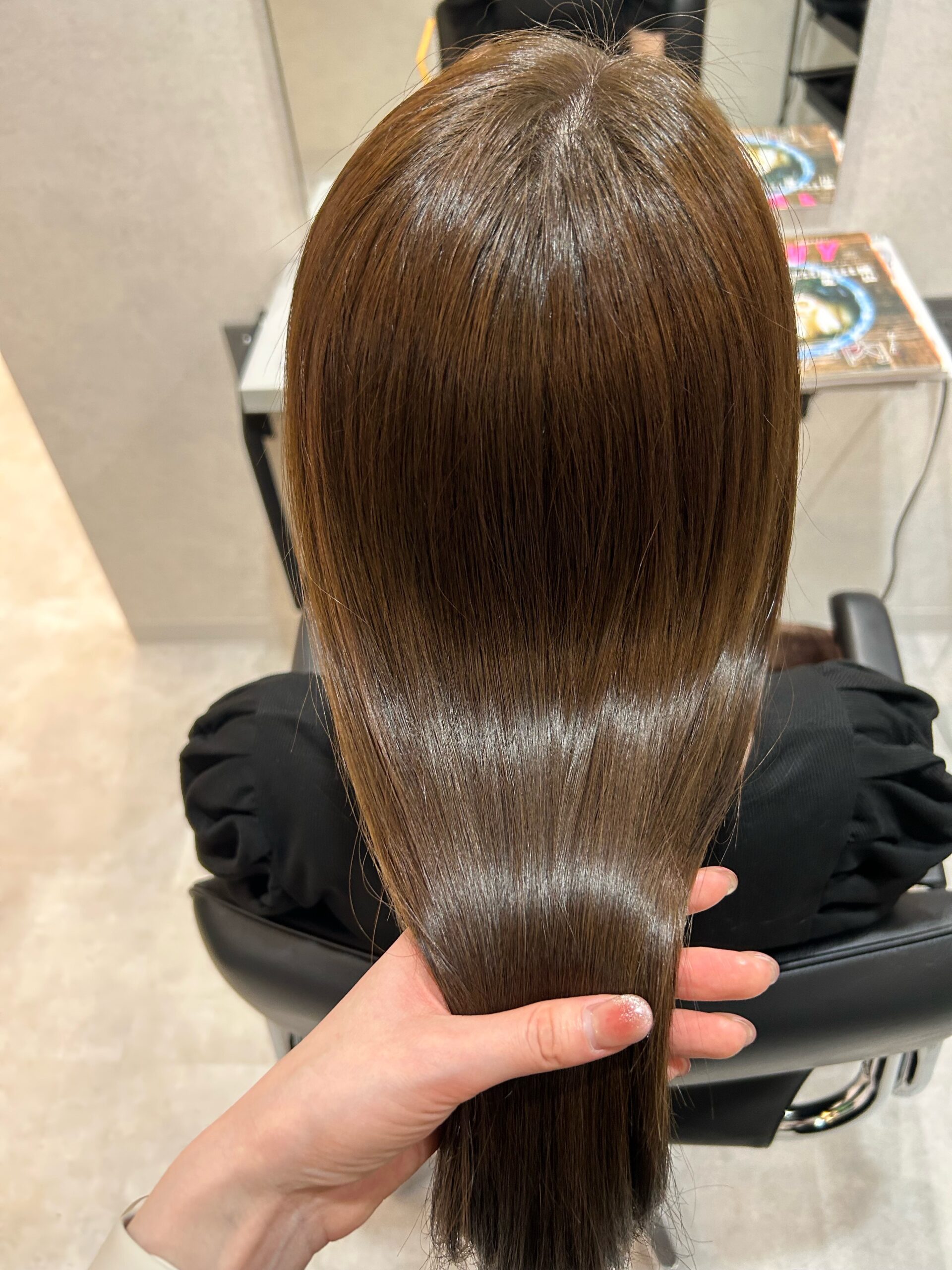「定期的に水素ストレートを続けていたら、髪質改善の効果で手触りが驚くほど変わりました。」