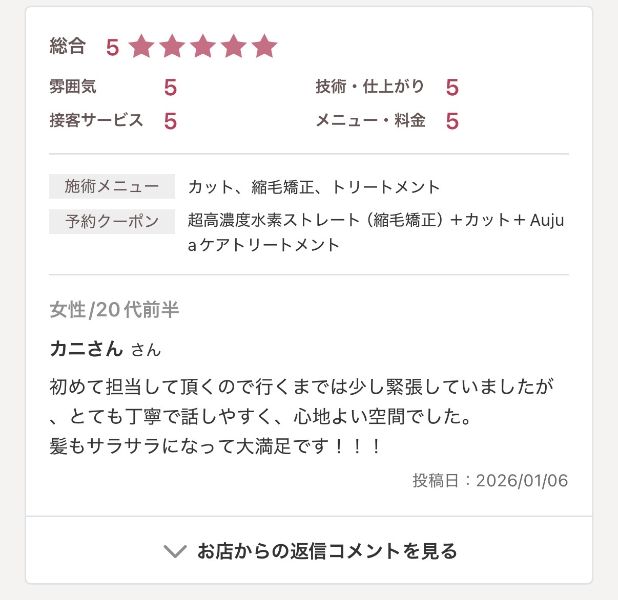 縮毛矯正と同じようなメニューで