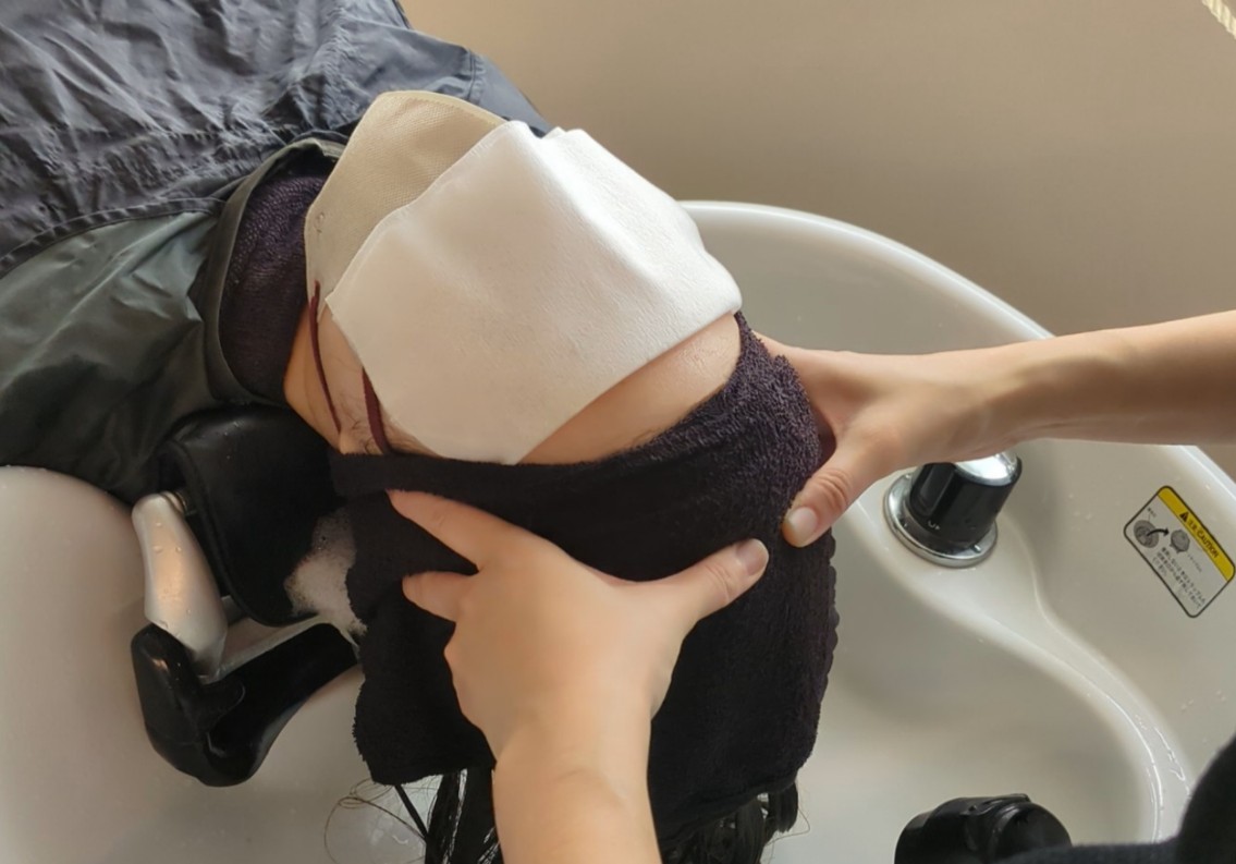 タオルドライ後、清潔な状態の頭皮に保湿液を馴染ませる頭皮ケアを!