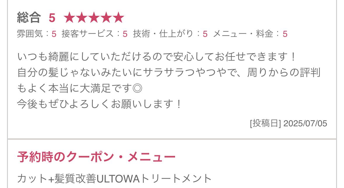 ULTOWA(ウルトワ)髪質改善トリートメントの口コミ