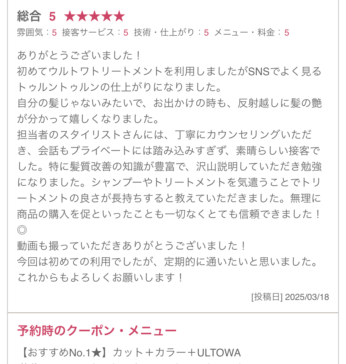 ULTOWA(ウルトワ)髪質改善トリートメントをされたお客様は