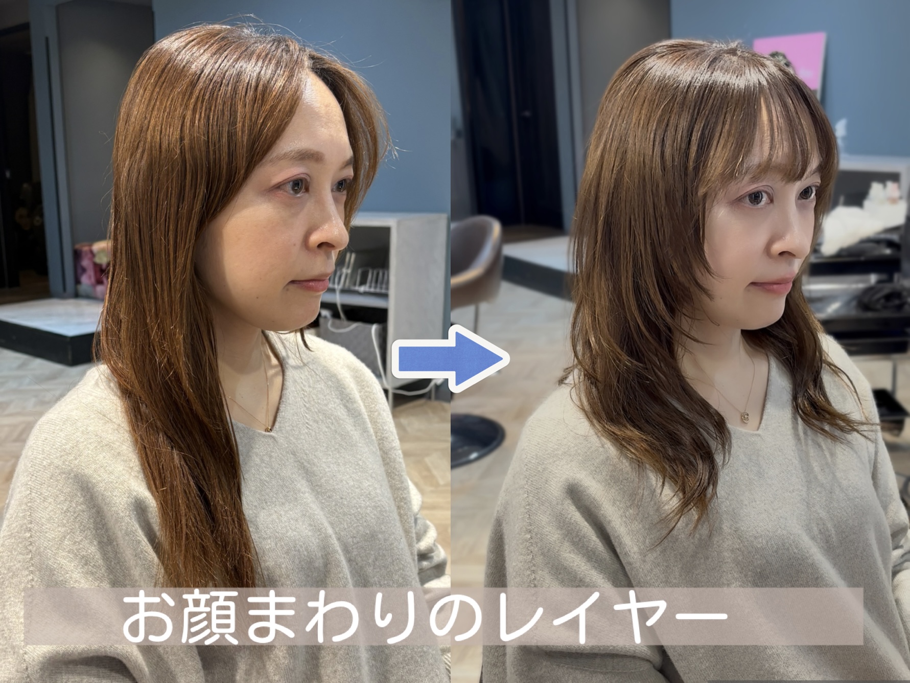 30代以降の大人女性で現在ワンレンや重めがお好きな方はしっかりカウンセリングしてからレイヤーカットすることをお勧めいたします!