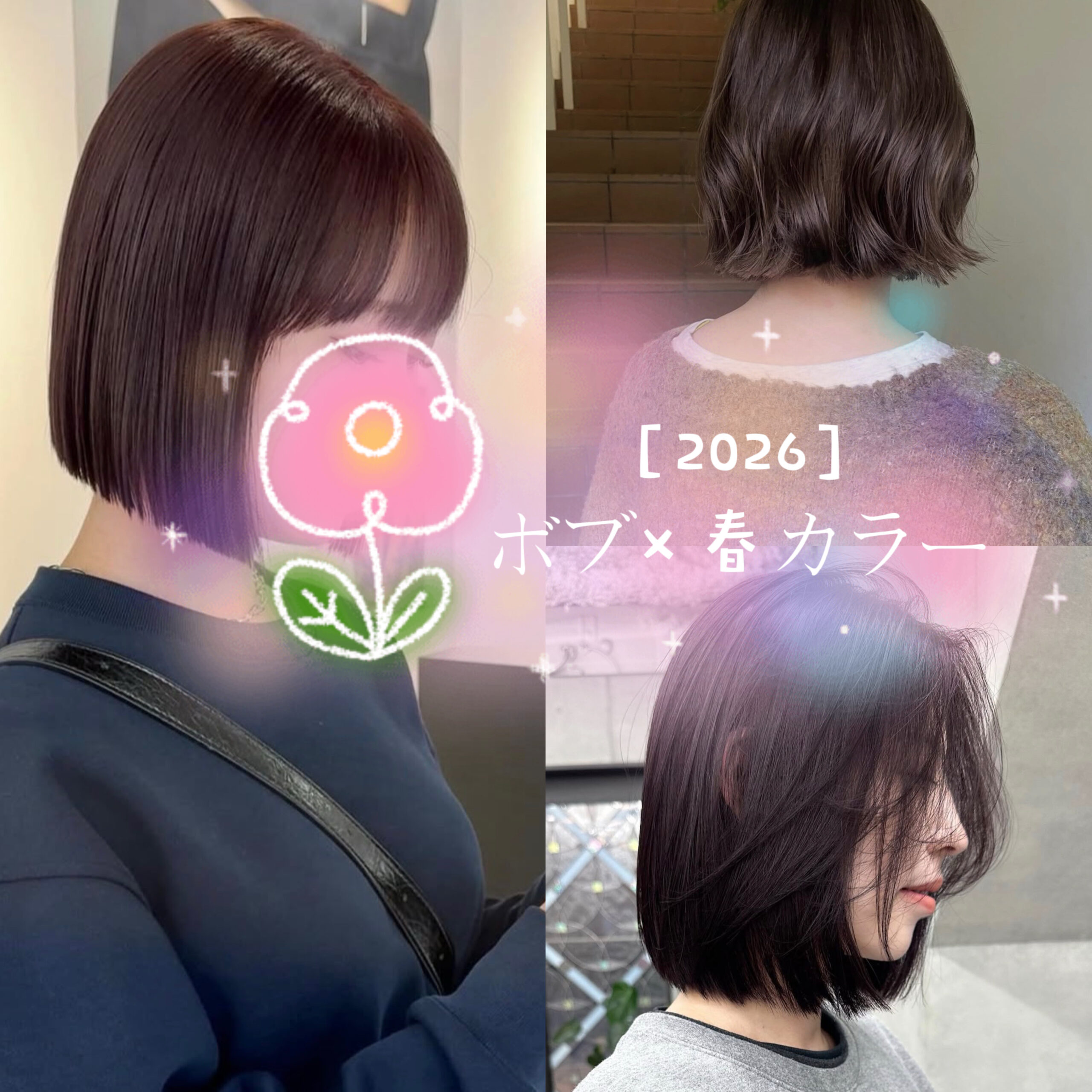 ボブに挑戦してみたい方や、ダメージを抑えながら透明感のあるカラーを楽しみたい方におすすめの内容になっています!