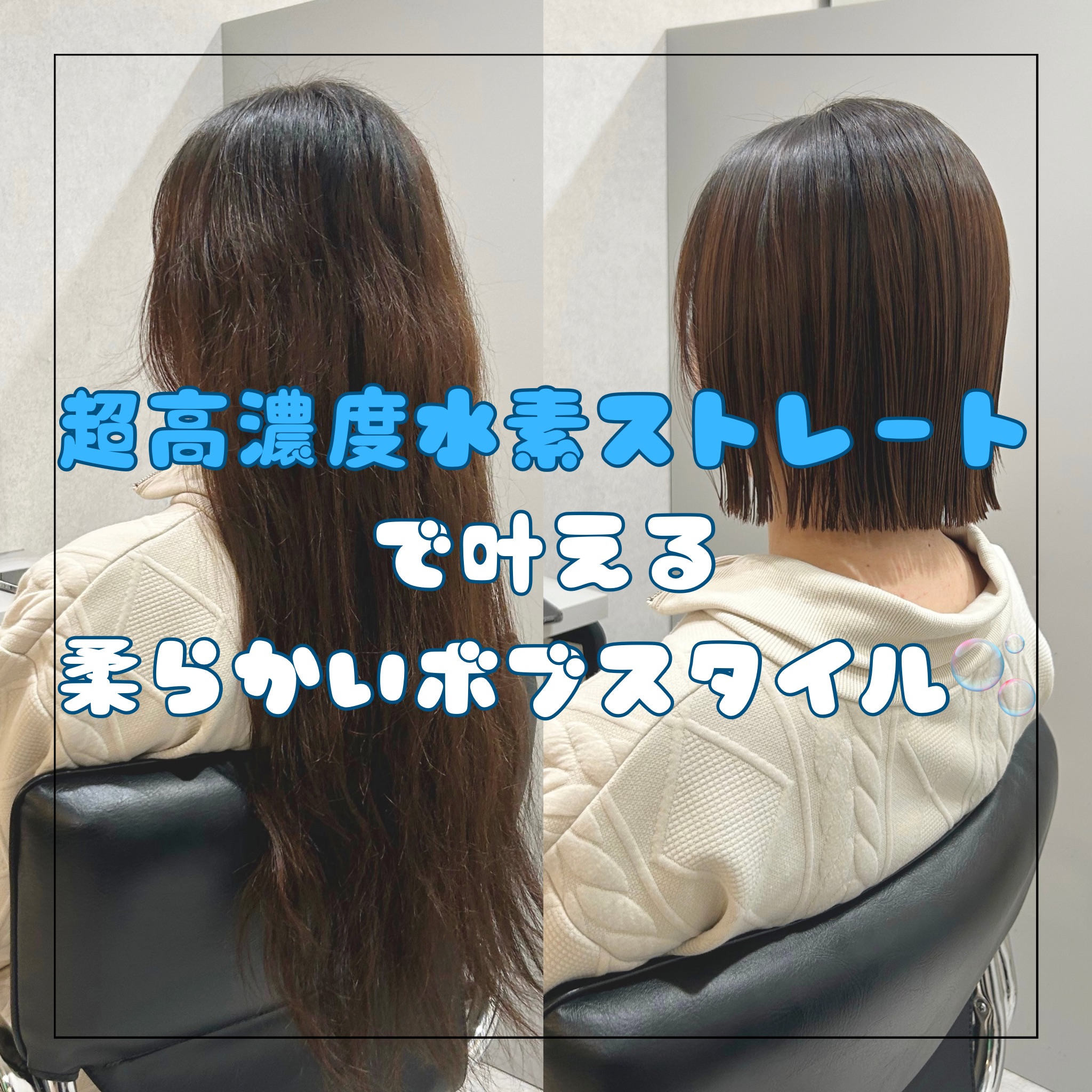 そんな私も1年に2回ほど欠かさず行っている水素のホリスティックストレートの魅力とボブとの相性をご紹介できればと思います🫧