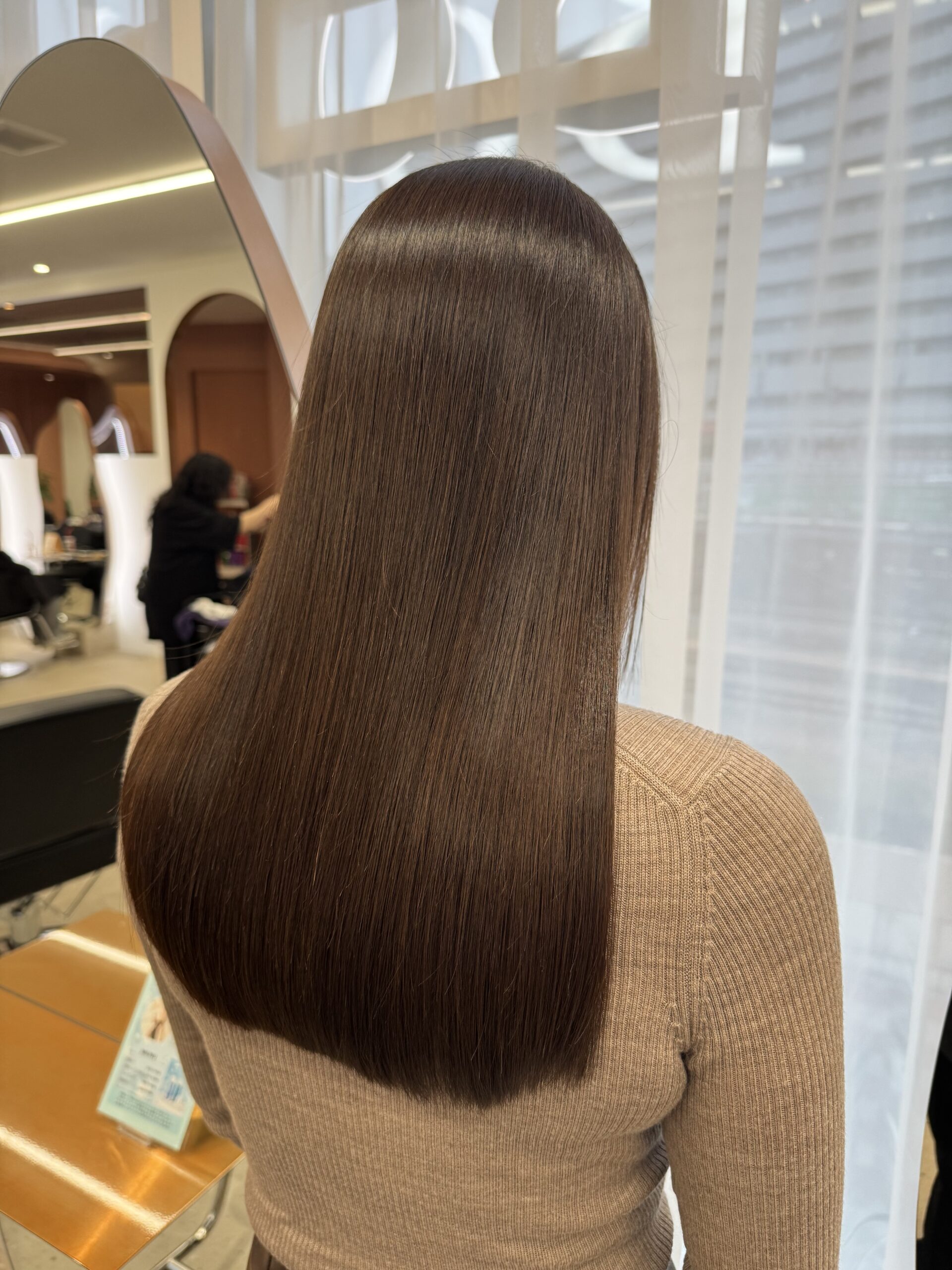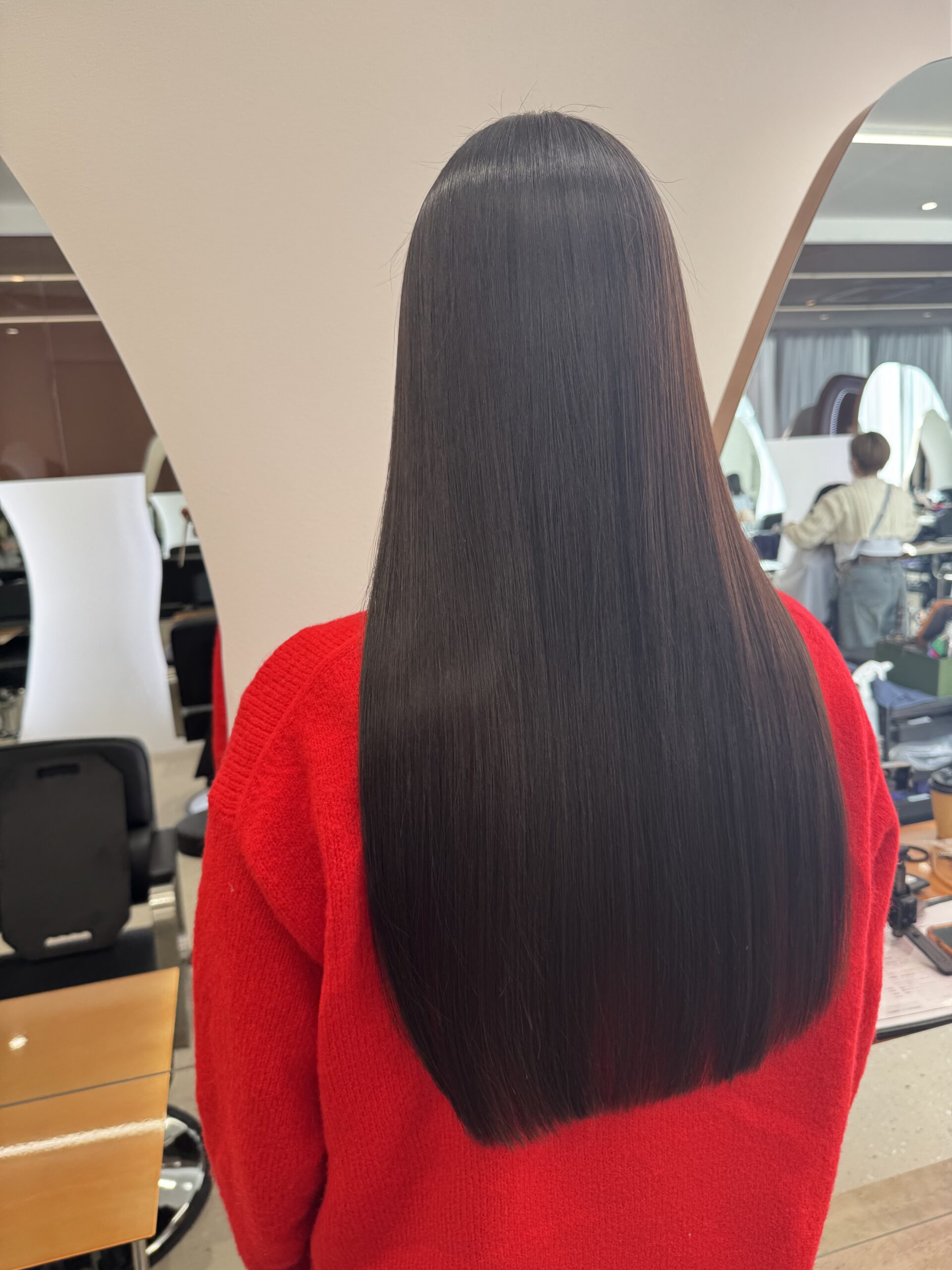 こちらの方はそんなに大きなうねりやクセがあるわけではないけど髪の毛がまとまりにくいというのがお悩みで、友人からホリスティックストレートをおすすめされてご来店頂きました!